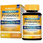 NewRhythm Probiotics 50 Billion CFU 20 Strains, 60 Veggie Capsules, Targeted Release Technology, Stomach Acid Resistant, No Need for Refrigeration, Non-GMO, Gluten Free